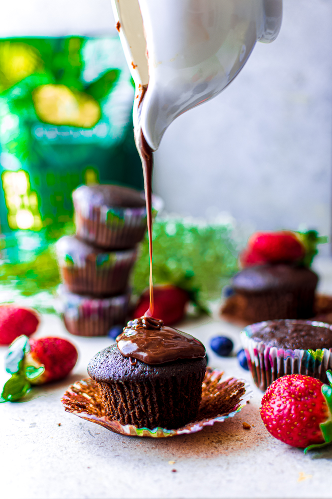 - Drizzle your muffins with melted chocolate. Enjoy with fruits of your choice!
