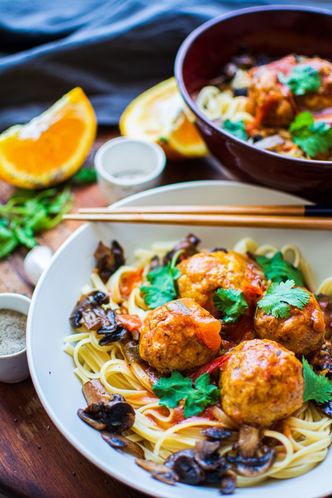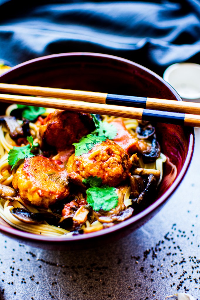 - In a bowl dish out the pasta, decorate the pasta with mushrooms.